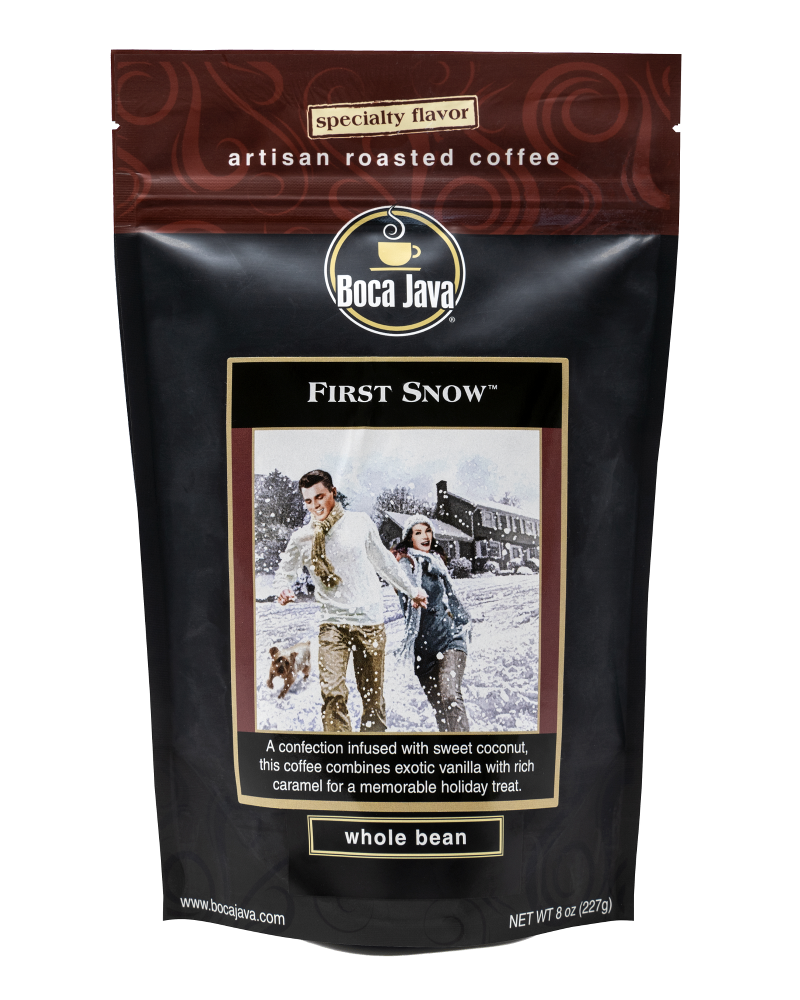 There's something purely magical about the first snow of the season! So go ahead, dive into a giant snowdrift and warm yourself up afterwards with a delicious cup of First Snow coffee. The whole beans in this coffee actually look like they, too, have been covered in a layer of pillowy snow for an added treat. (Note: if you order this coffee ground, your coffee will not have the white appearance.)